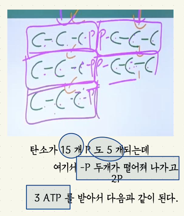 사용해서 6개의 P 인산기가 빠져나가고  고 에너지인 G3P를 만들게 되었음