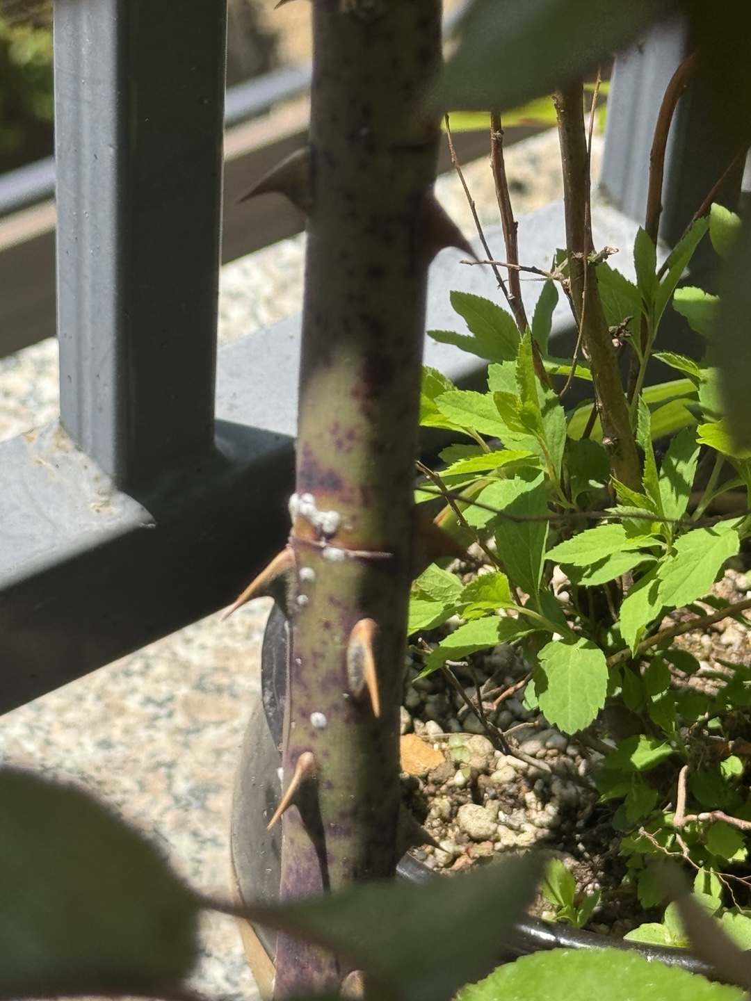 - 줄기에 하얗게 비늘처럼 붙어 있음